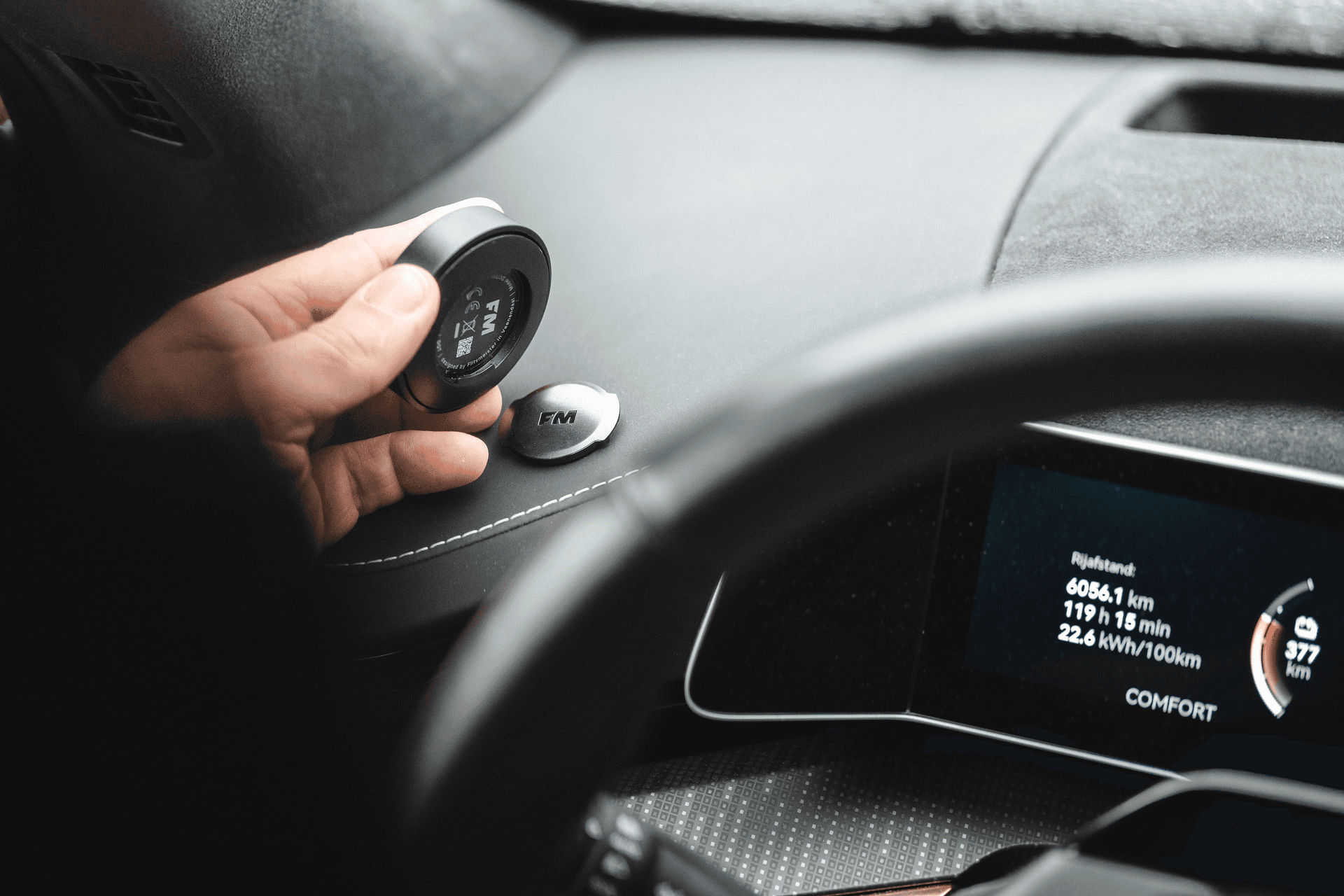 Heel simpel, bevestig de USB-C-kabel in de poort en gaan! De batterij van de Flitsmeister DOT gaat ~ 1.000 km mee onder normaal gebruik.