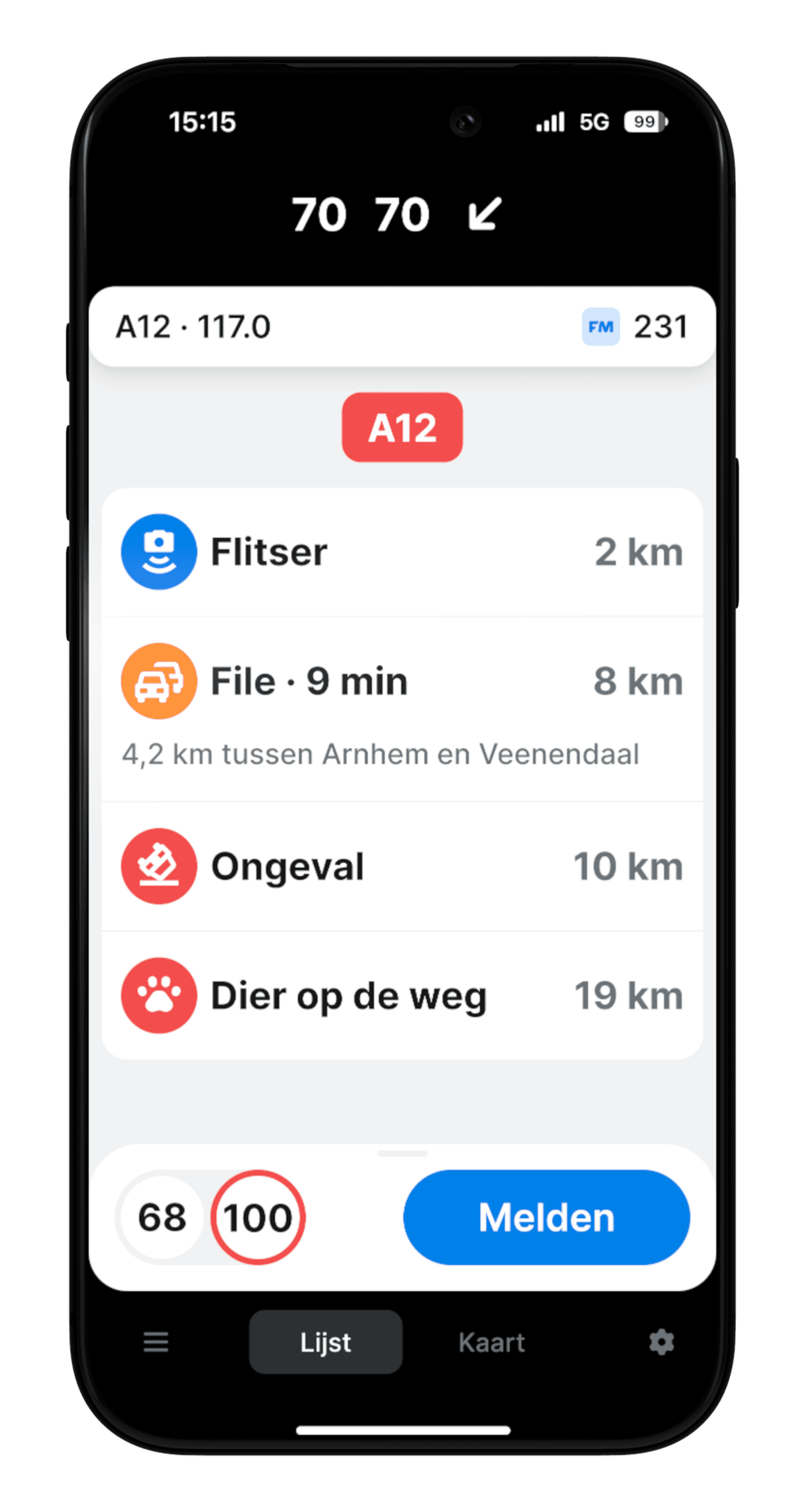 Waarschuwt je voor flitsers, verkeershinder en gevaren.