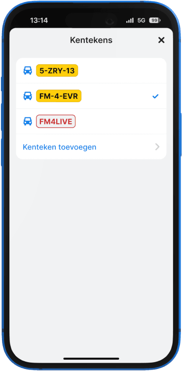Rij je met meerdere auto’s of parkeer je voor een vriend? Bij Flitsmeister Parkeren voeg je makkelijk en gratis extra kentekens toe.